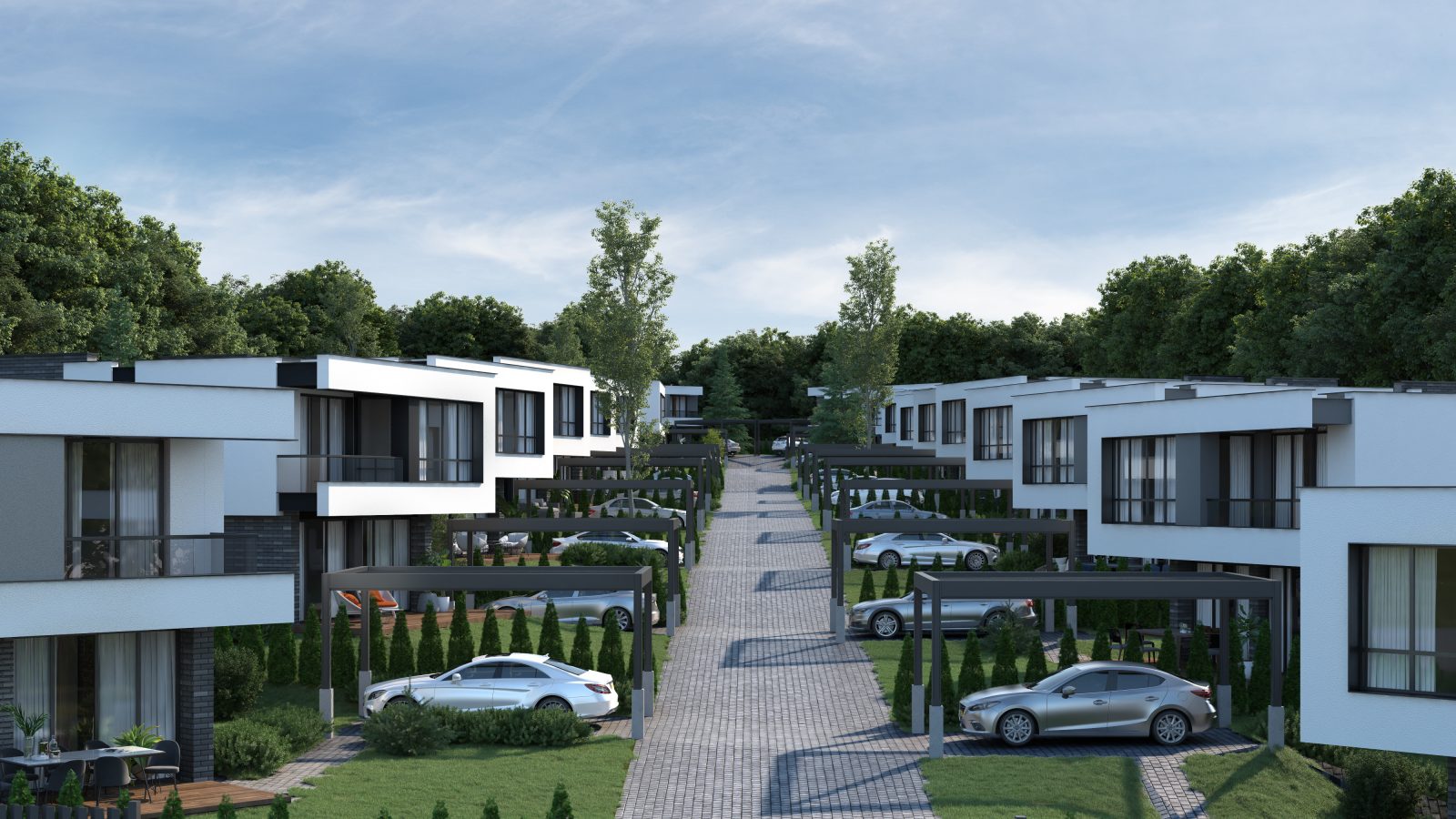 Парцелите са с площ от 300 кв.м. до 573 кв.м. Предлагат се три типа къщи, тип „А“, тип „Б“ и тип „В“, всяка от които на два етажа, с две или с три спални. Разгънатите застроени площи са съответно от 104,10 кв. м., 127,11кв. и 151,12 кв. м.