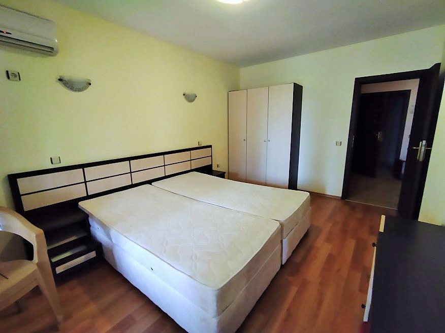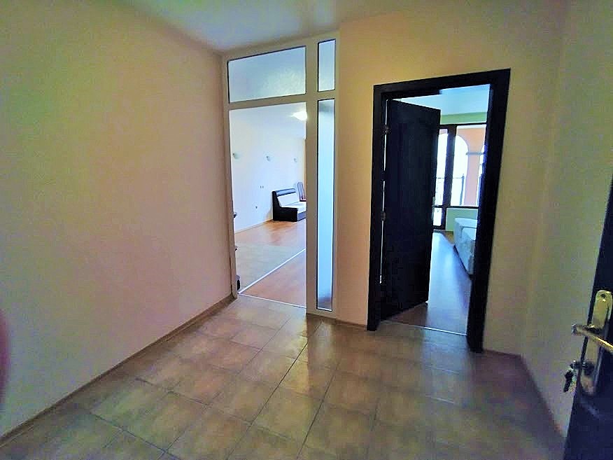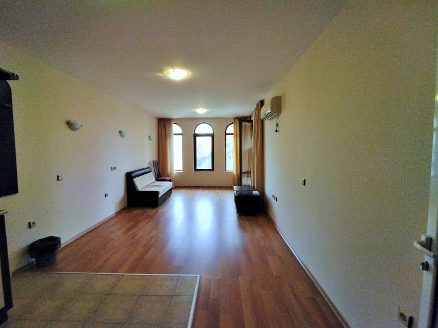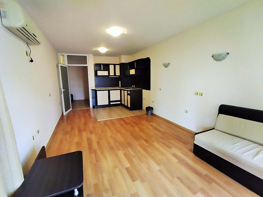 Апартаментът се състои от антре, много голяма дневна с кухненски бокс, спалня, санитарен възел с вана и просторна тераса. Продава се с цялото налично обзавеждане и оборудване. Комплексът разполага с два плувни басейна, два басейна за деца, детска площадка, два ресторанта, перфектно и целогодишно поддържани общи части и озеленен двор. Асансьор. Прекрасна възможност за отдаване под наем. Етаж 1.